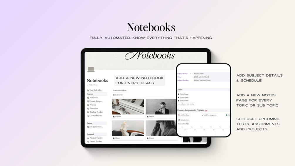 Our Notion Student Planner is your essential companion for academic excellence and personal growth. Say goodbye to cluttered schedules and disorganized assignments, and step into a world of seamless organization and productivity.